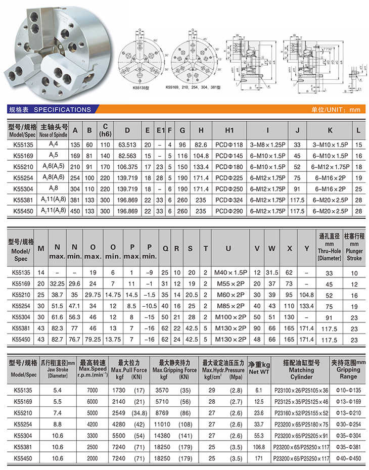 K55 三爪高速中實(shí)動(dòng)力卡盤
